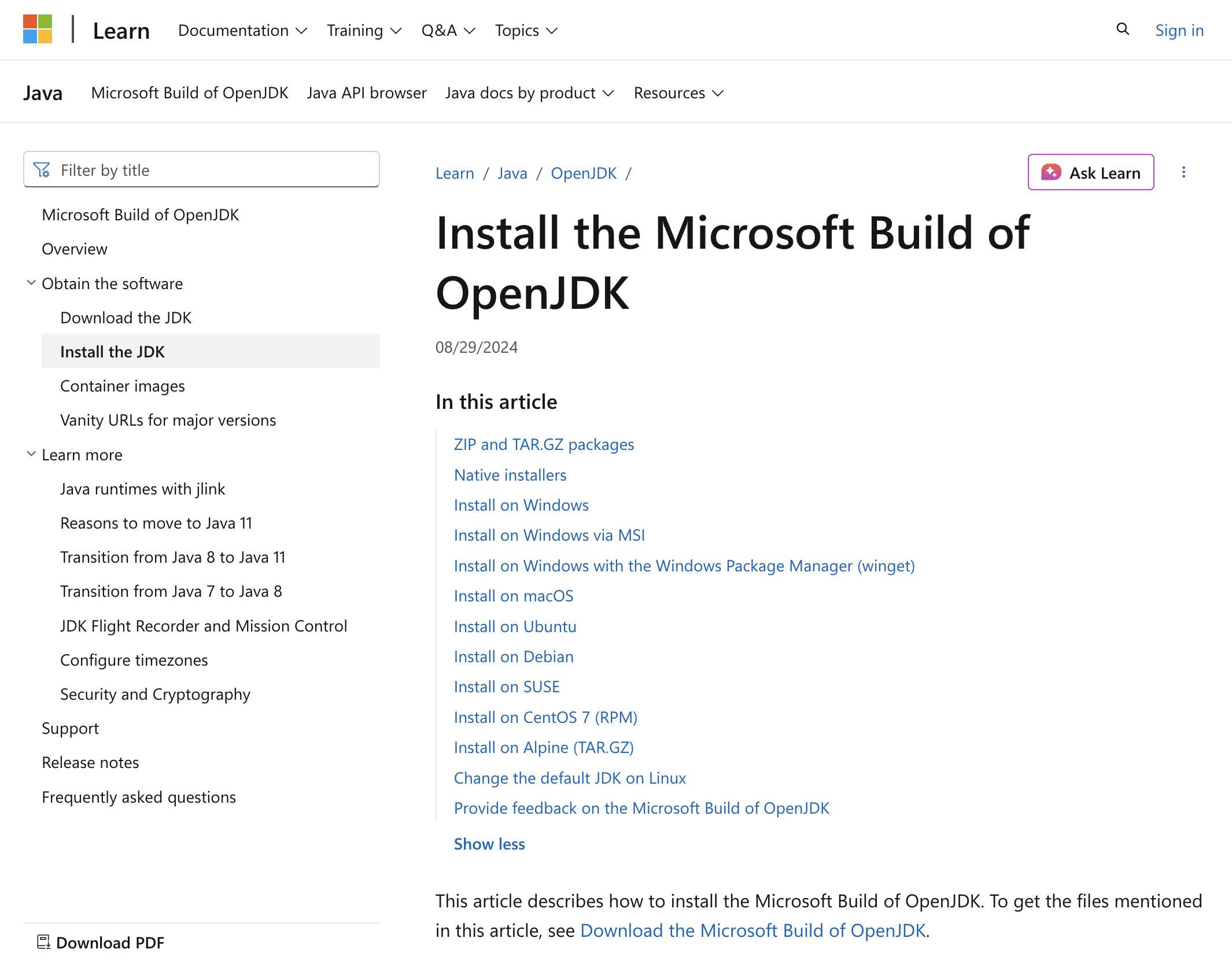 - Go to https://learn.microsoft.com/en-us/java/openjdk/install . You'll find instructions that you can follow for installing on any operating system.