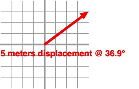But if we have to do any analyses that require us breaking this vector up into x and y components, it already has been! The "5 m/s at 53.1°" consists of two components, one in the x direction and one in the y direction. And we can use those components to solve problems.