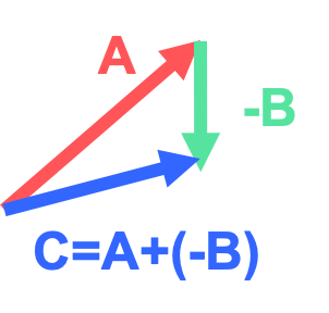 In the same way that A - B is equal to A + (-B), we can take the negative of a vector—a vector of the same magnitude but pointed in the opposite direction—and add it (place it tip-to-tail) with the first vector.
