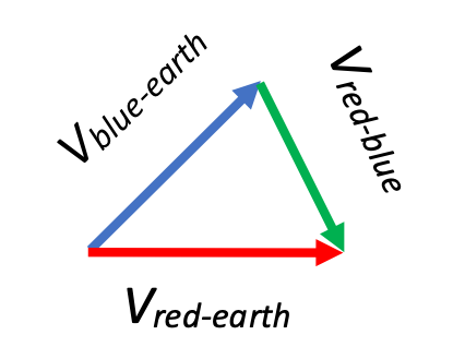 For relative motion problems, it's critical to label the vectors very clearly, in such a way that we can describe an object's velocity relative to a certain reference frame. In some problems the resultant velocity will be given in the problem, and you'll be trying to solve for a different vector.